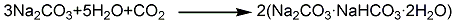 碳酸鈉合成法將粗碳酸鈉和碳酸氫鈉經蒸汽溶解,沉降除雜后清液,通二氧化碳反應到一定濃度后,再經蒸餾、冷卻、結晶即得倍半碳酸鈉,其反應方程式如下:
